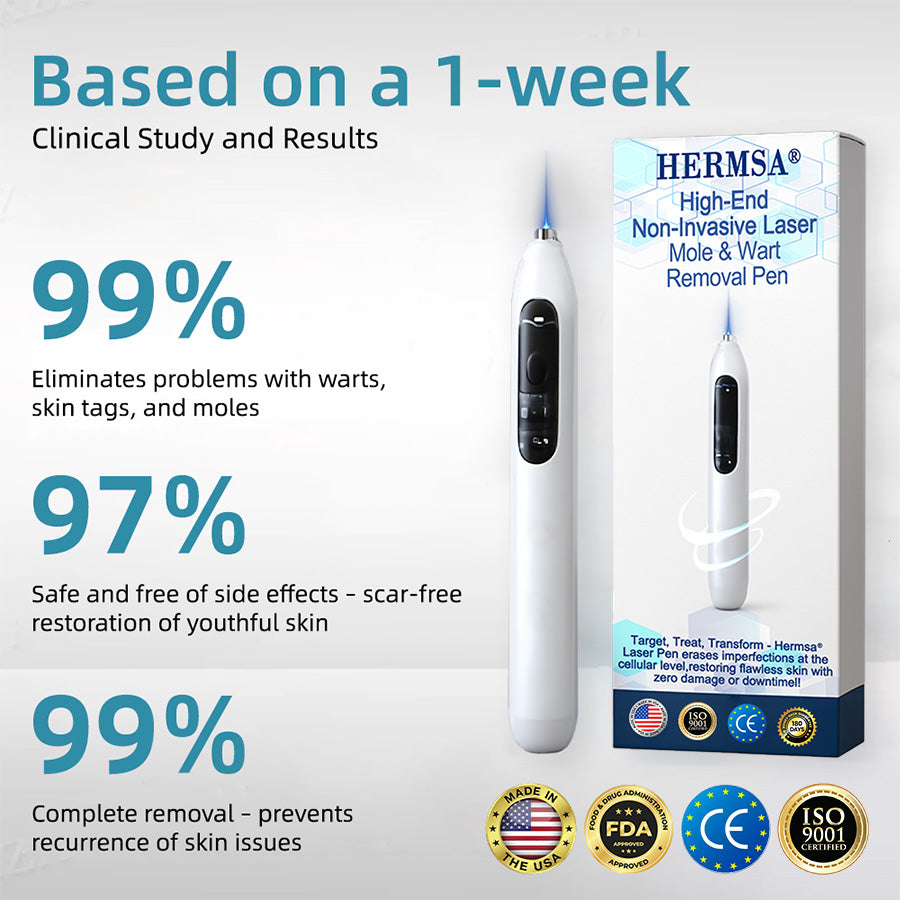 Say goodbye to moles, warts, dark spots and skin blemishes with the Hermsa® High-End Non-Invasive Laser Mole & Wart Removal Pen. Designed for easy use at home, this compact, lightweight device delivers professional-quality results in minutes. See visible skin improvements in just 2 weeks!
